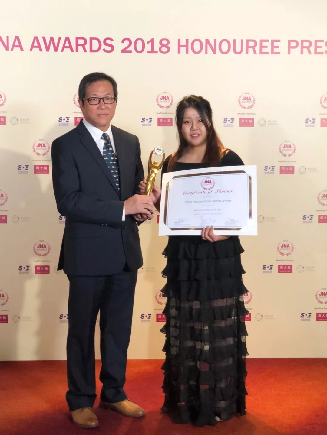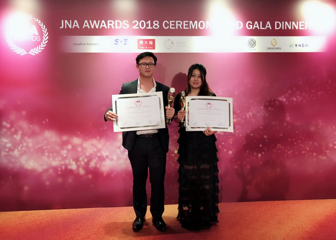 因受臺(tái)風(fēng)“山竹”影響而推遲舉行的JNA2018年度大獎(jiǎng)?lì)C獎(jiǎng)典禮暨晚宴于17日在香港洲際酒店順利舉行,JNA大獎(jiǎng)是由《亞洲珠寶》(Jewellery News Asia,以下簡(jiǎn)稱“JNA”)主辦的亞洲地區(qū)珠寶界國(guó)際盛事,有著“珠寶界奧斯卡”美譽(yù)之稱。來(lái)自世界各地的珠寶業(yè)內(nèi)翹楚和權(quán)威專(zhuān)家共聚頒獎(jiǎng)典禮,見(jiàn)證珠寶界的榮耀時(shí)刻。明豐珠寶及集團(tuán)公司中金國(guó)禮憑借2018年的優(yōu)異表現(xiàn)雙雙入圍JNA大獎(jiǎng)。