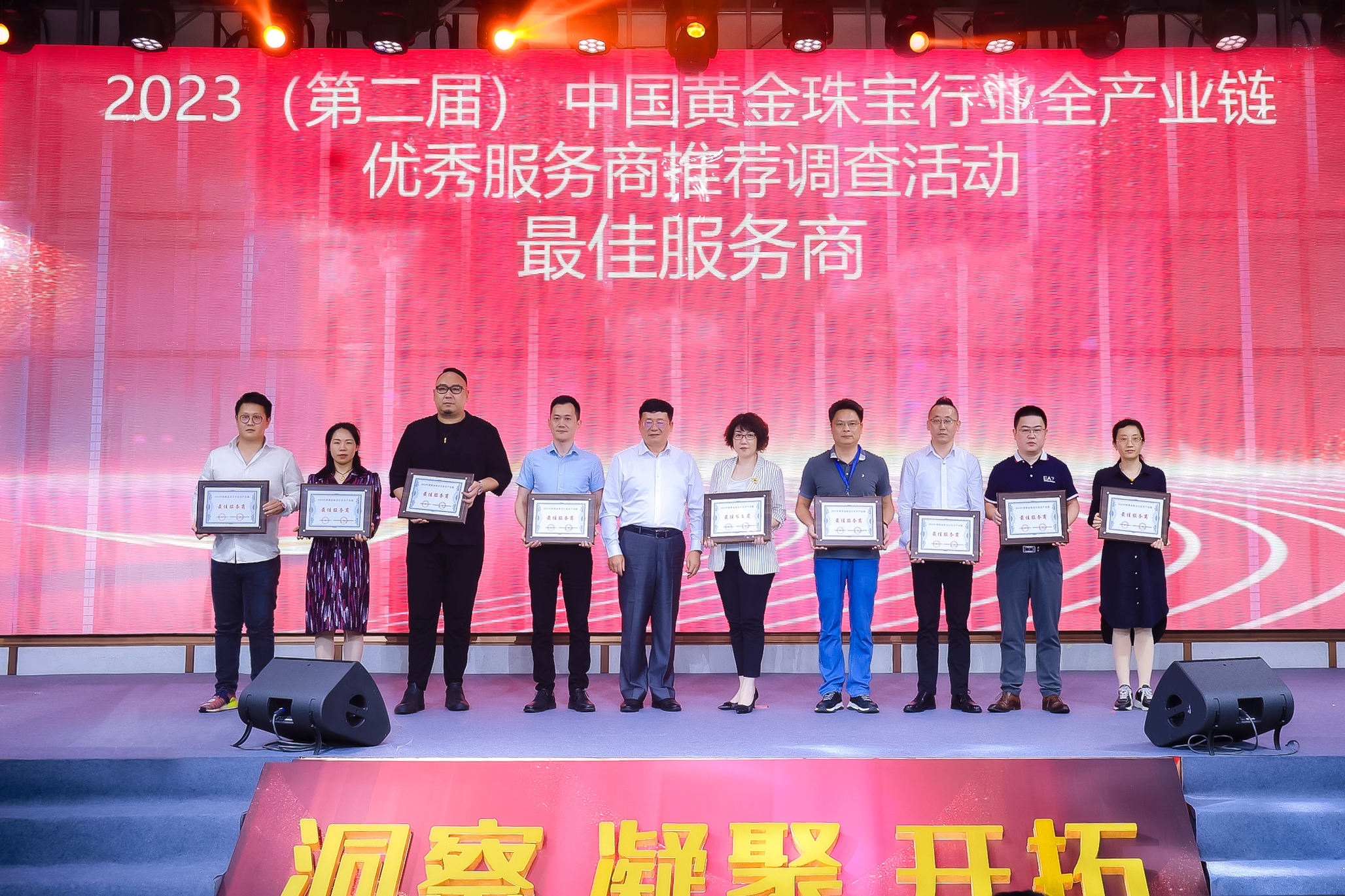 本次盛典活動以“洞察·凝聚·開拓”為主題舉辦,國內(nèi)知名學(xué)者、專家、有關(guān)政府官員和行業(yè)龍頭企業(yè)負(fù)責(zé)人、百強金店代表及黃金珠寶產(chǎn)業(yè)全產(chǎn)業(yè)鏈優(yōu)秀服務(wù)等共聚一堂,見證中國黃金珠寶行業(yè)蓬勃發(fā)展,及行業(yè)優(yōu)秀服務(wù)商的榮耀時刻。