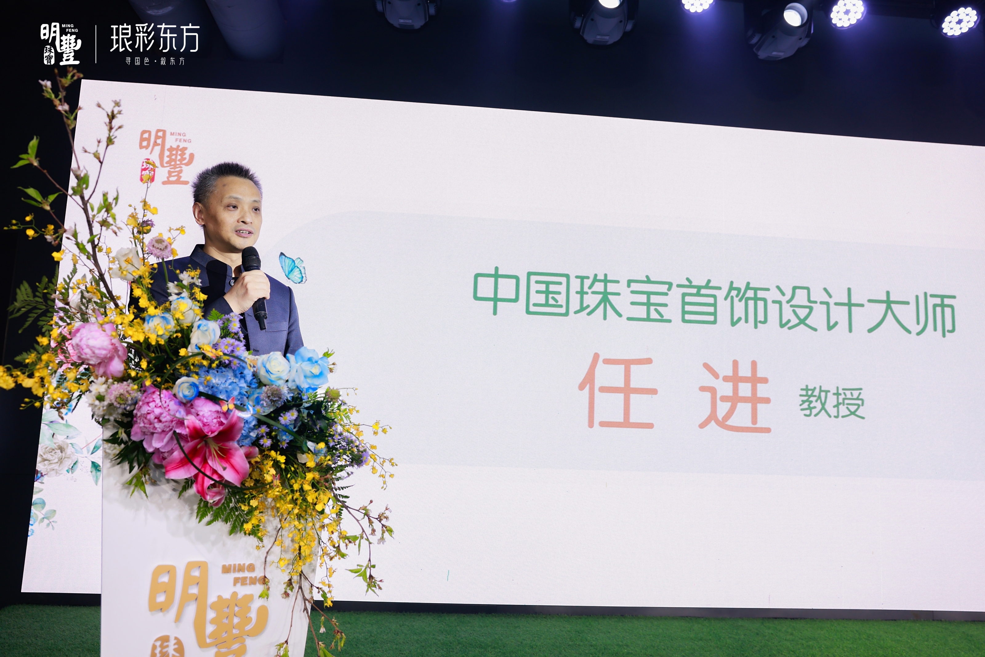 2023年,任進(jìn)教授與明豐珠寶聯(lián)袂推出傳家金點(diǎn)鉆《鳳儀青卿》古法套裝系列,2024年再度合作“瑯彩東方”系列形象產(chǎn)品,從資深設(shè)計師前輩的角度,肯定了明豐珠寶原創(chuàng)產(chǎn)品的旺盛生產(chǎn)力。